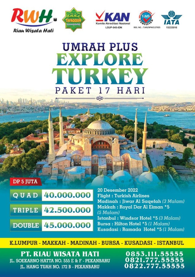 Paket UMRAH PLUS EXPLORE TURKEY 17H ++