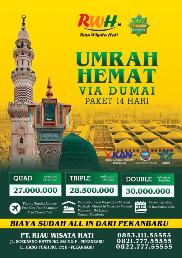 "Wujudkan impian berangkat Umroh yang Mudah, Cepat dan Aman bersama Riau Wisata Hati Service"