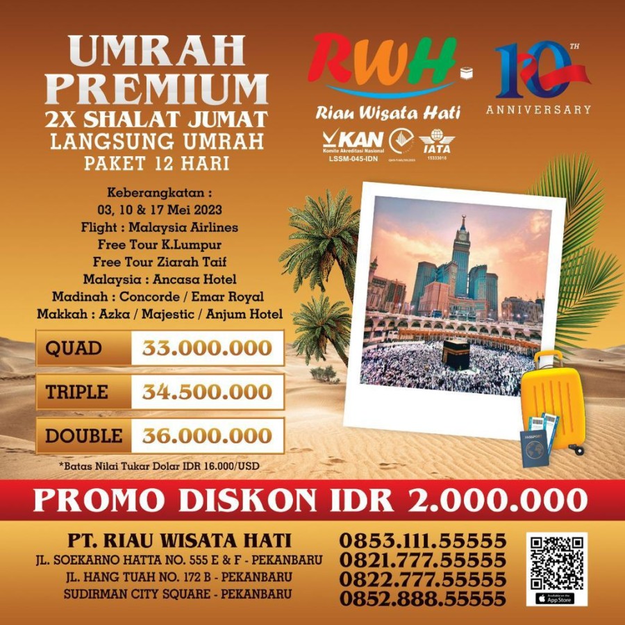 Paket UMRAH PREMIUM 2 X SHOLAT JUMAT LANGSUNG UMRAH 12 HARI