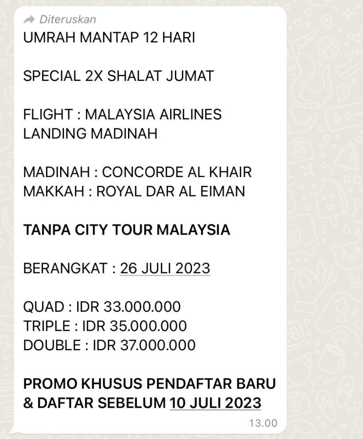 UMRAH MANTAP 12 HARI TANPA KERETA CEPAT