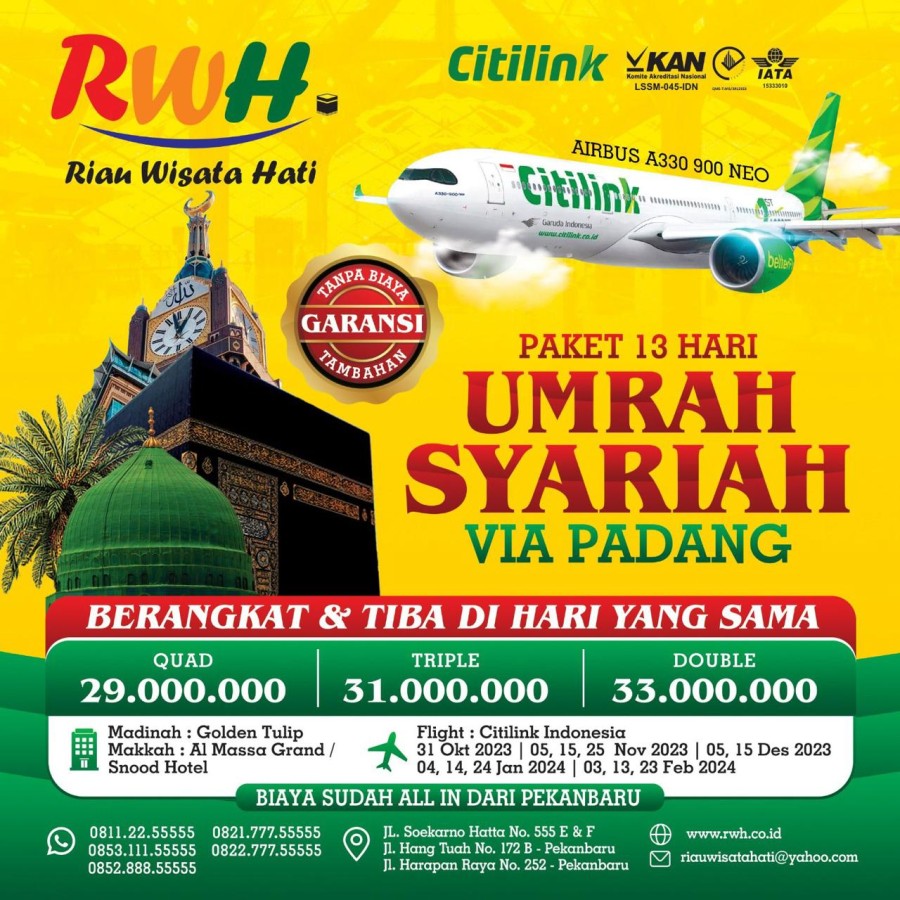 Paket UMRAH SYARIAH 13H VIA PADANG (CITILINK)