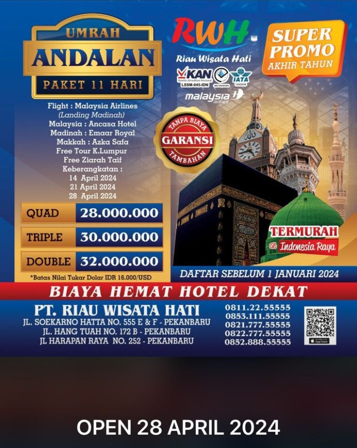 Paket UMRAH ANDALAN 12 HARI ( 28 APRIL 2024 )