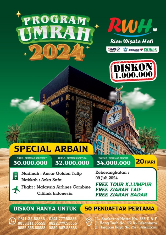 "Wujudkan impian berangkat Umroh yang Mudah, Cepat dan Aman bersama Riau Wisata Hati Service"
