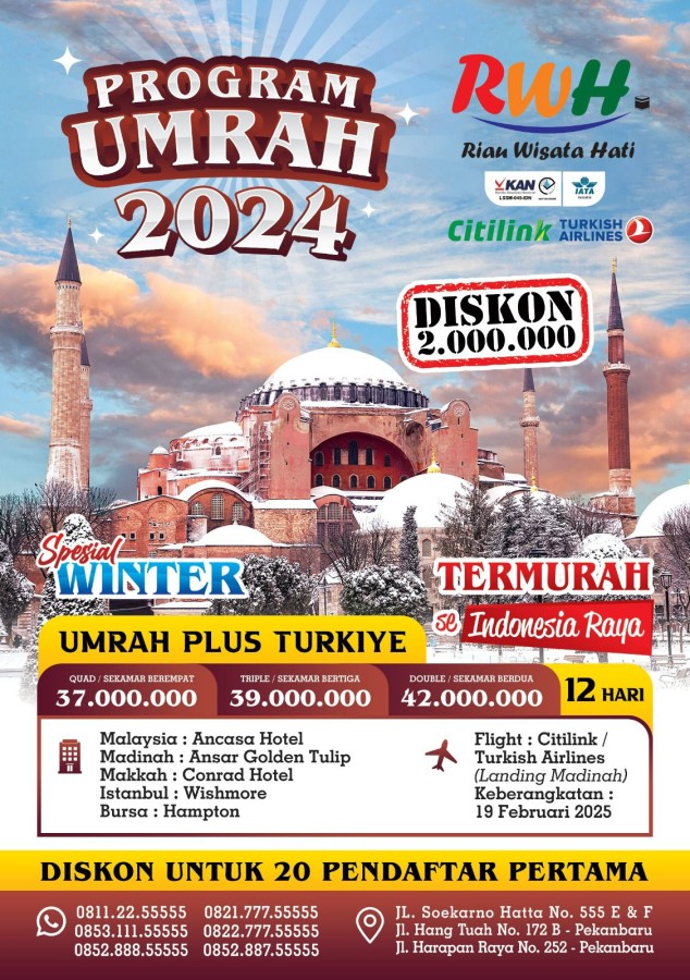 Paket UMRAH PLUS TURKIYE 12H SPC WINTER 19FEB