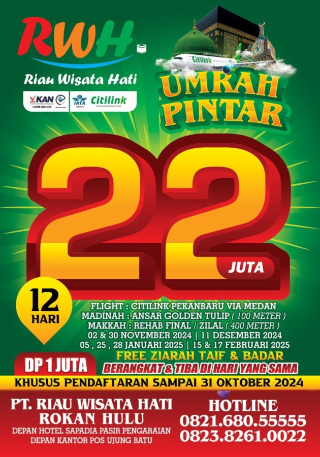 "Wujudkan impian berangkat Umroh yang Mudah, Cepat dan Aman bersama Riau Wisata Hati Service"