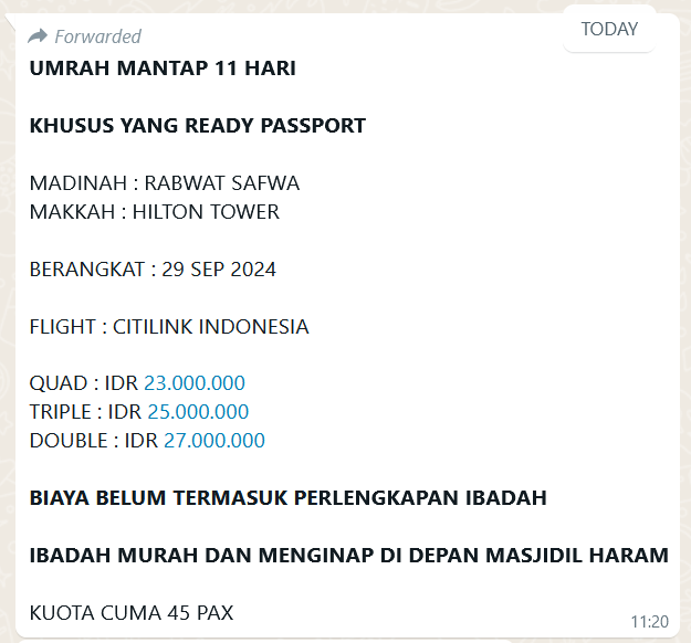 Paket UMRAH MANTAP 11H 45PAX ONLY