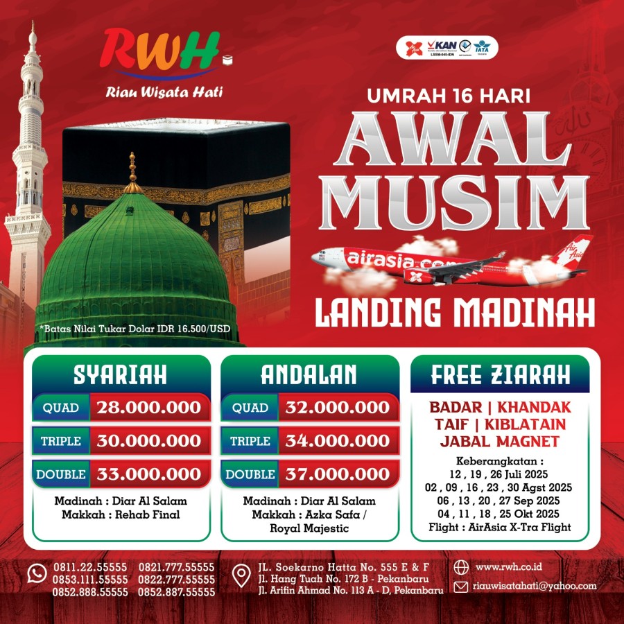 Paket U. ANDALAN 16 HARI - AWAL MUSIM ~ AIR ASIA ( LANDING MADINAH )