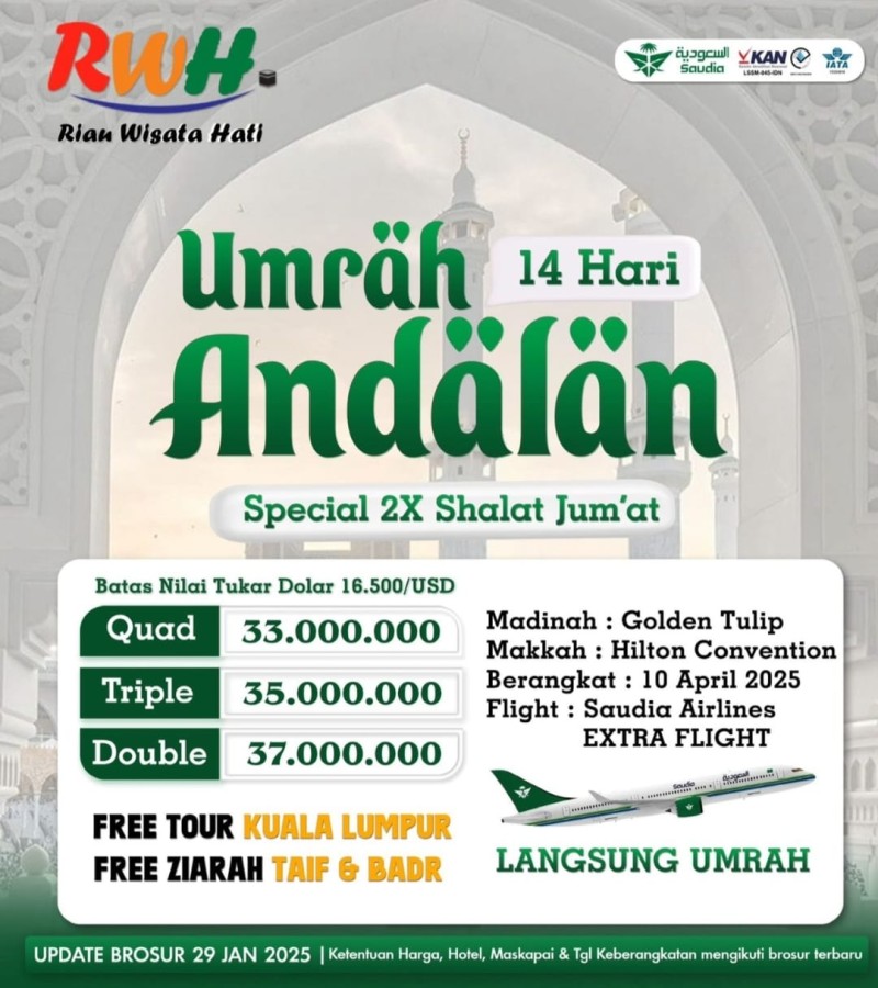 Paket UMRAH ANDALAN 14 HARI - 10 APRIL SAUDI AIRLINES