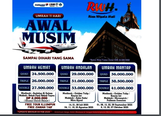 Paket UMRAH AWAL MUSIM - ANDALAN 11 HARI - MH