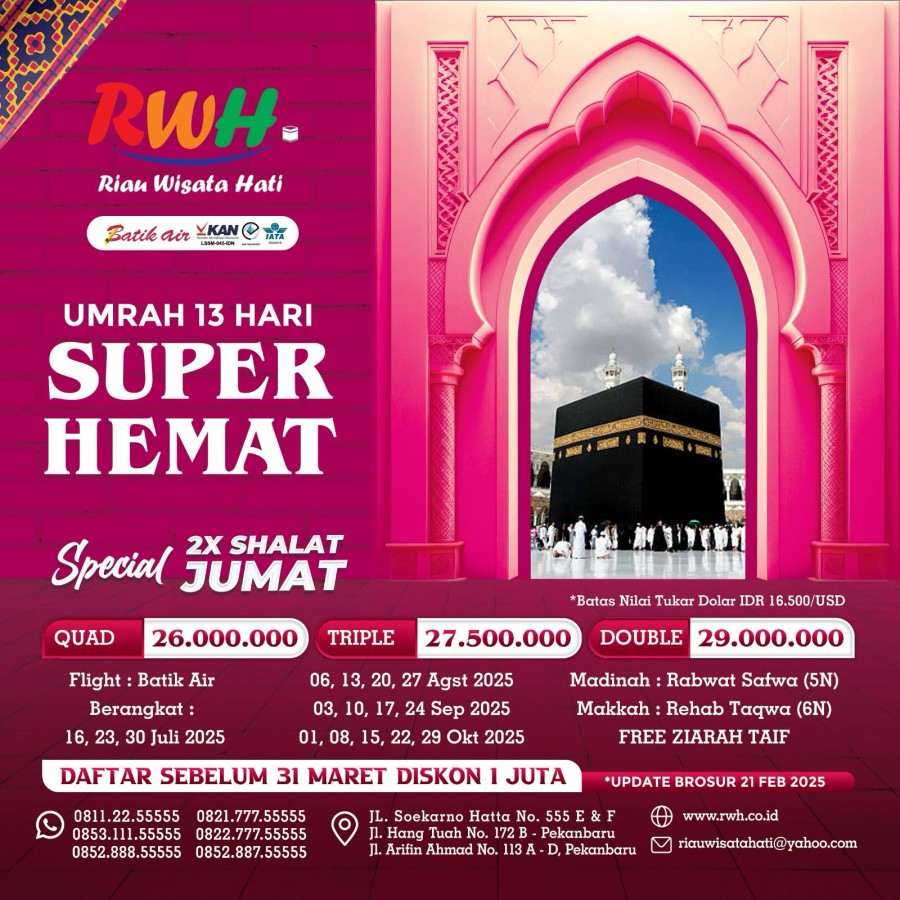 "Wujudkan impian berangkat Umroh yang Mudah, Cepat dan Aman bersama Riau Wisata Hati Service"
