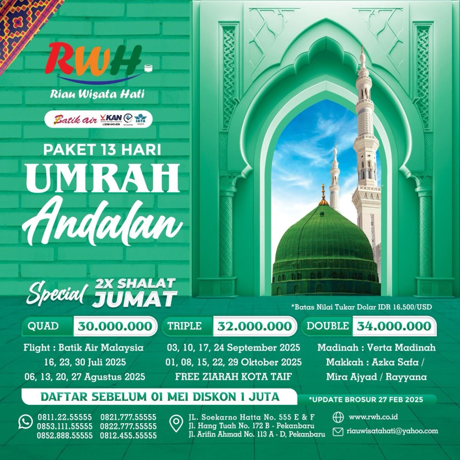"Wujudkan impian berangkat Umroh yang Mudah, Cepat dan Aman bersama Riau Wisata Hati Service"
