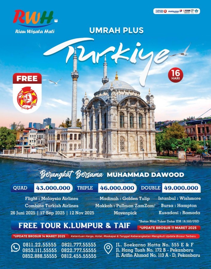 Paket UMRAH PLUS TURKIYE 16 HARI 26 JUNI