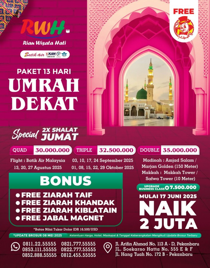 Paket UMRAH DEKAT SPECIAL 13 HARI 2 X SHALAT JUM'AT