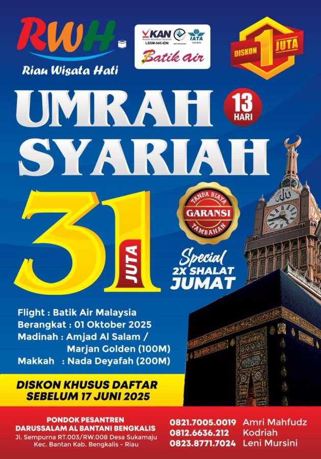 "Wujudkan impian berangkat Umroh yang Mudah, Cepat dan Aman bersama Riau Wisata Hati Service"