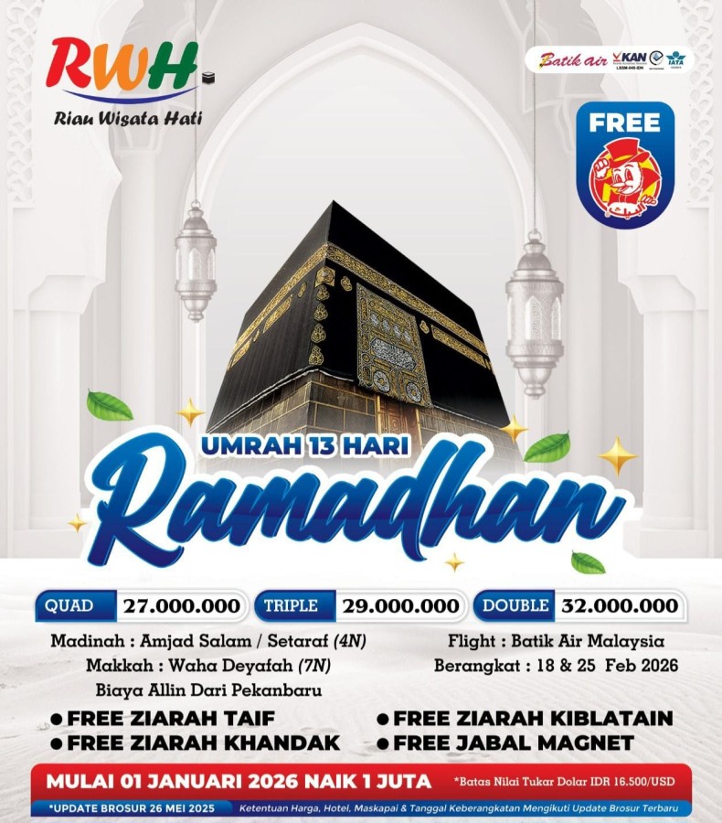 "Wujudkan impian berangkat Umroh yang Mudah, Cepat dan Aman bersama Riau Wisata Hati Service"