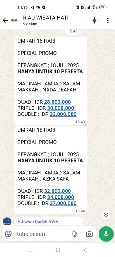 Paket UMRAH 16H PROMO 18JUL NADA DEAFAH
