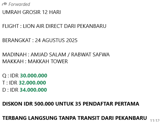 Paket UMRAH GROSIR 12 HARI 25 AUG 2025 LION