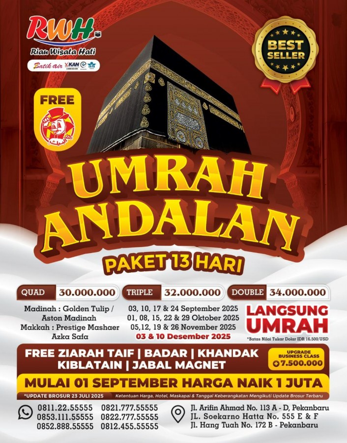 UMRAH ANDALAN NEW 12 HARI - BATIK AIR ( Update 23 July 2025 )