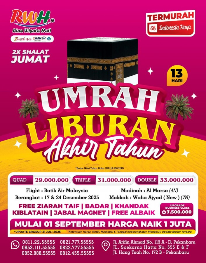 UMRAH LIBUR AKHIR TAHUN 13 H (UPDATE 30 JULI 2025)