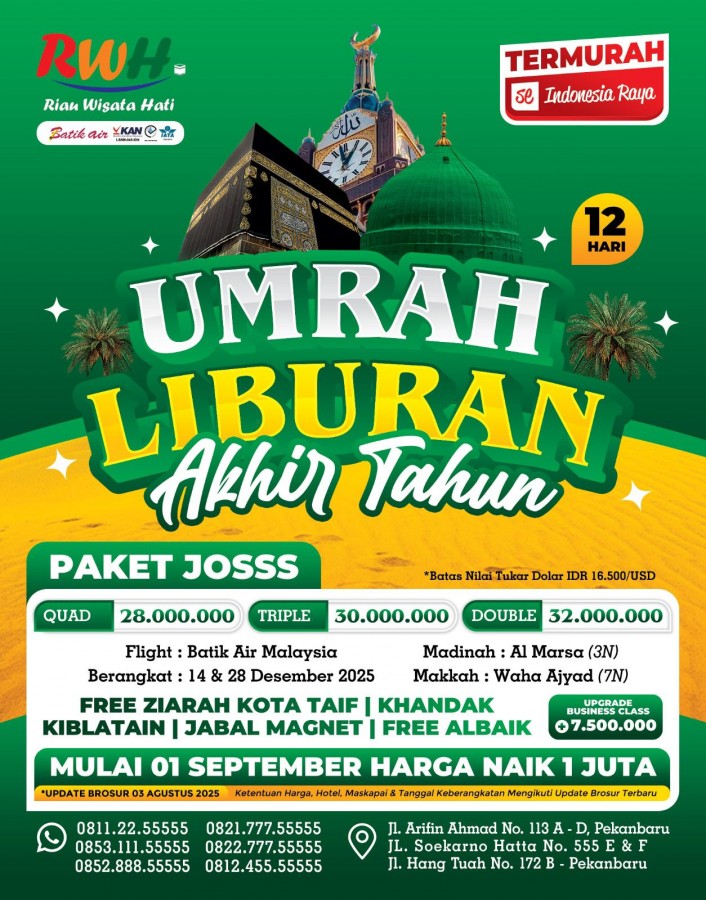Paket UMRAH JOSS LIBUR AKHIR TAHUN 12 H (UPDATE 03 AGUSTUS 2025)