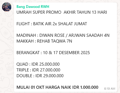 Paket UMRAH SUPER PROMO AKHIR TAHUN 13 HARI