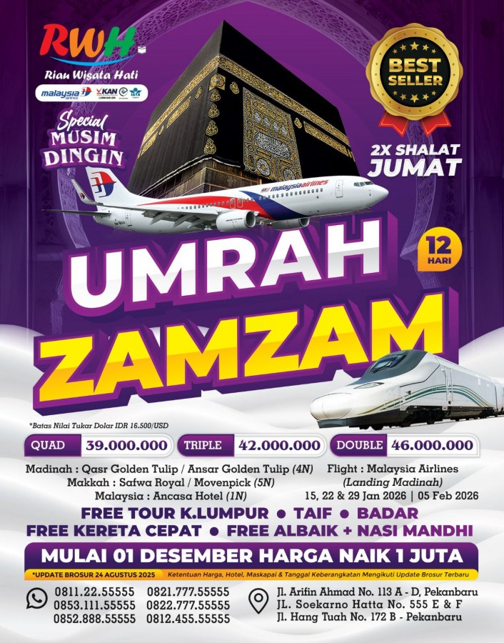 UMRAH ZAMZAM MH 12 HARI 2026 (UPDATE 24 AGUSTUS 2025)