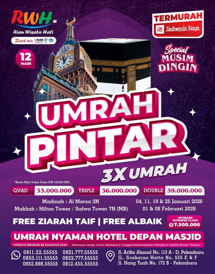 Paket UMRAH PINTAR AWAL TAHUN 2026 12 HARI (UPDATE 28 AGUSTUS 2025)
