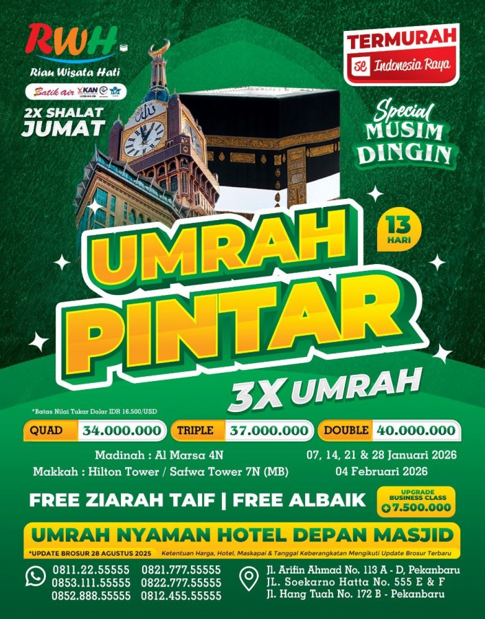 "Wujudkan impian berangkat Umroh yang Mudah, Cepat dan Aman bersama Riau Wisata Hati Service"
