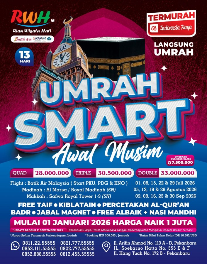 "Wujudkan impian berangkat Umroh yang Mudah, Cepat dan Aman bersama Riau Wisata Hati Service"
