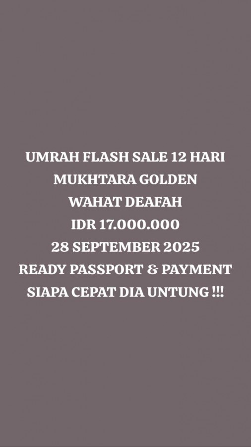 Paket UMRAH FLASH SALE 12 HARI 28 SEPTEMBER 2025 (UPD. 24 SEP 25)