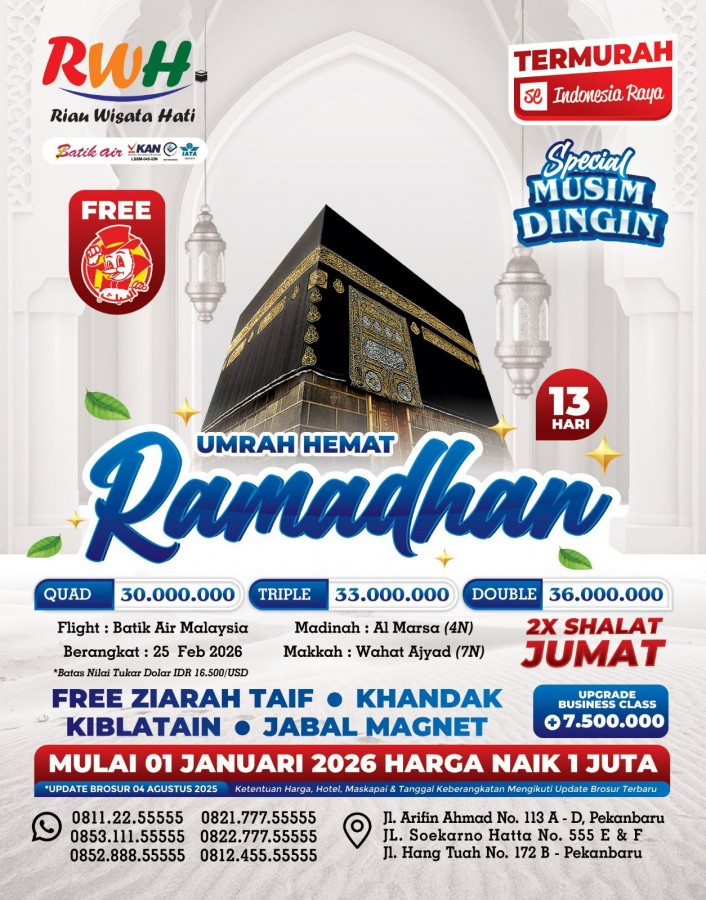 "Wujudkan impian berangkat Umroh yang Mudah, Cepat dan Aman bersama Riau Wisata Hati Service"