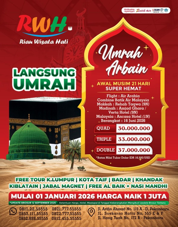 Paket UMRAH ARBAIN 21 HARI SUPER HEMAT AWAL MUSIM (UPD. 12 SEP 25)