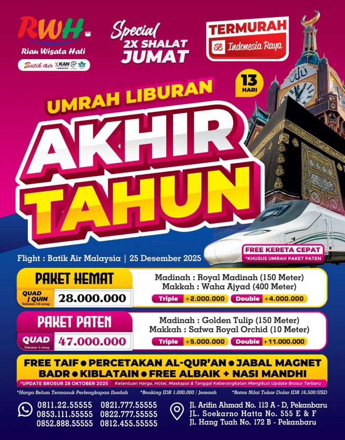 Paket UMRAH LIBURAN AKHIR TAHUN 13 HARI 2025 PAKET HEMAT (UPD. 29 OKT 25)
