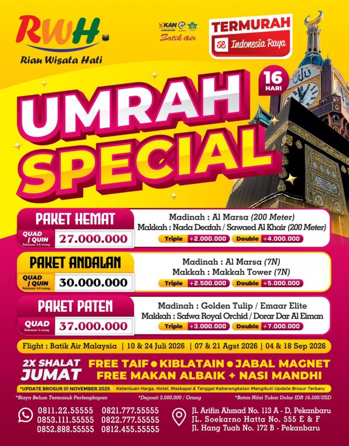 "Wujudkan impian berangkat Umroh yang Mudah, Cepat dan Aman bersama Riau Wisata Hati Service"