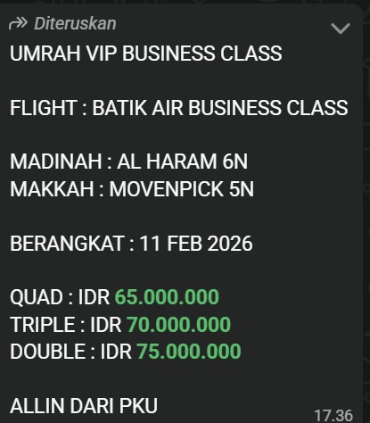Paket UMRAH VIP BUSINESS CLASS 13 HARI SENGGOL RAMADHAN