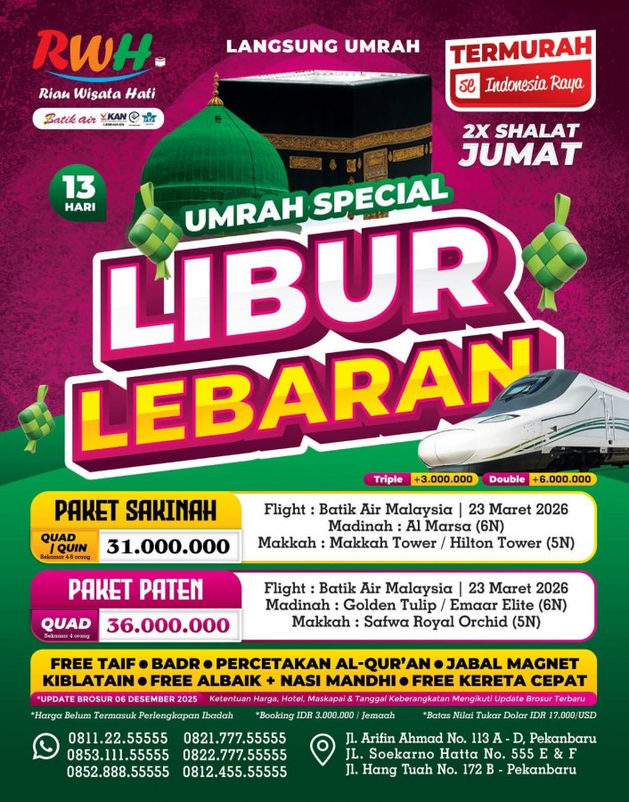 Paket NEW UMRAH SPECIAL LIBUR LEBARAN 13 HARI PAKET SAKINAH (UPD. 06 DES 25)