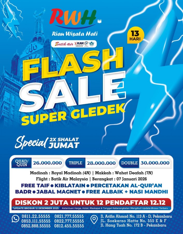 Paket UMRAH FLASH SALE SUPER GLEDEK 13 HARI (UPD. 12 DES 25)