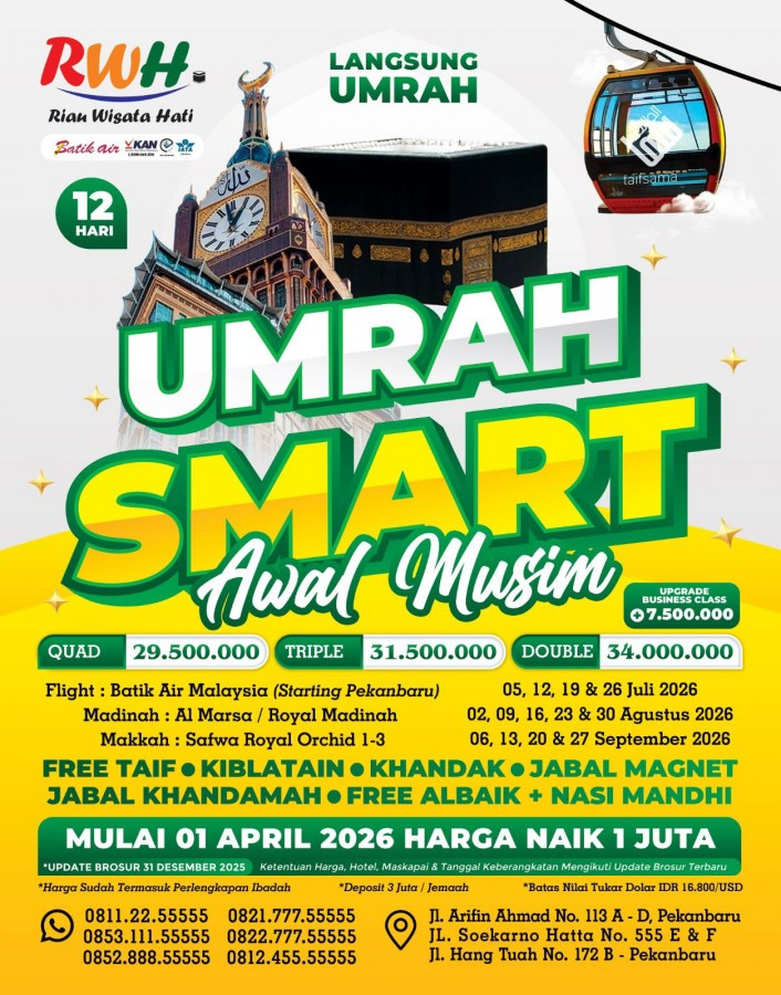 "Wujudkan impian berangkat Umroh yang Mudah, Cepat dan Aman bersama Riau Wisata Hati Service"