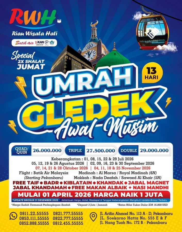 "Wujudkan impian berangkat Umroh yang Mudah, Cepat dan Aman bersama Riau Wisata Hati Service"