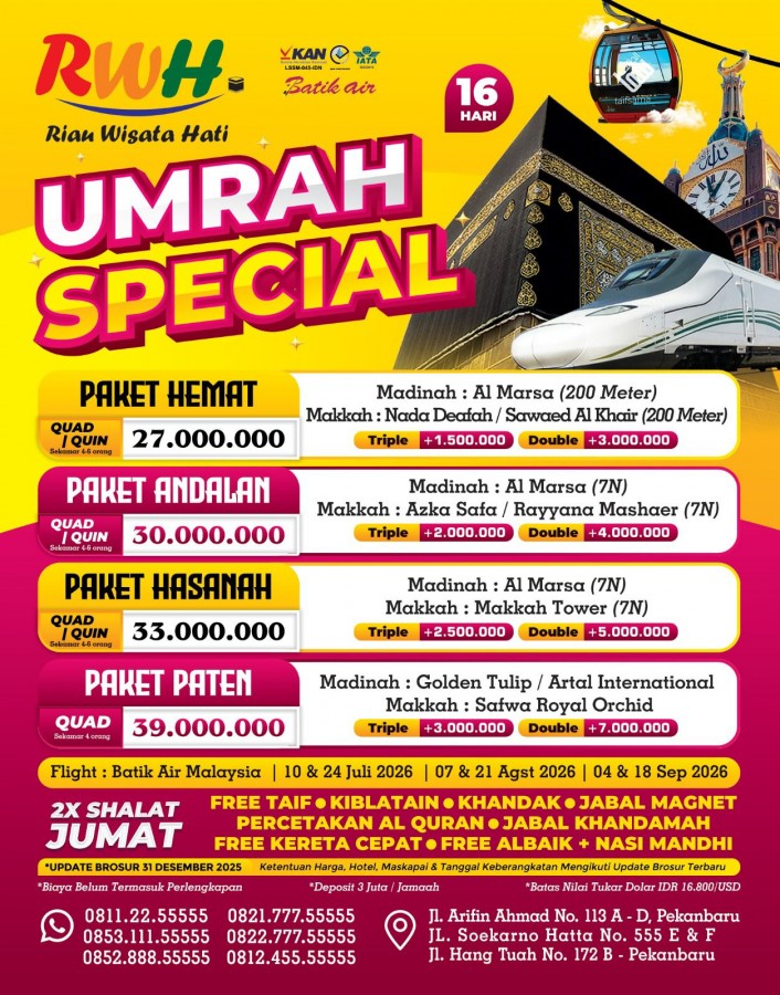 "Wujudkan impian berangkat Umroh yang Mudah, Cepat dan Aman bersama Riau Wisata Hati Service"