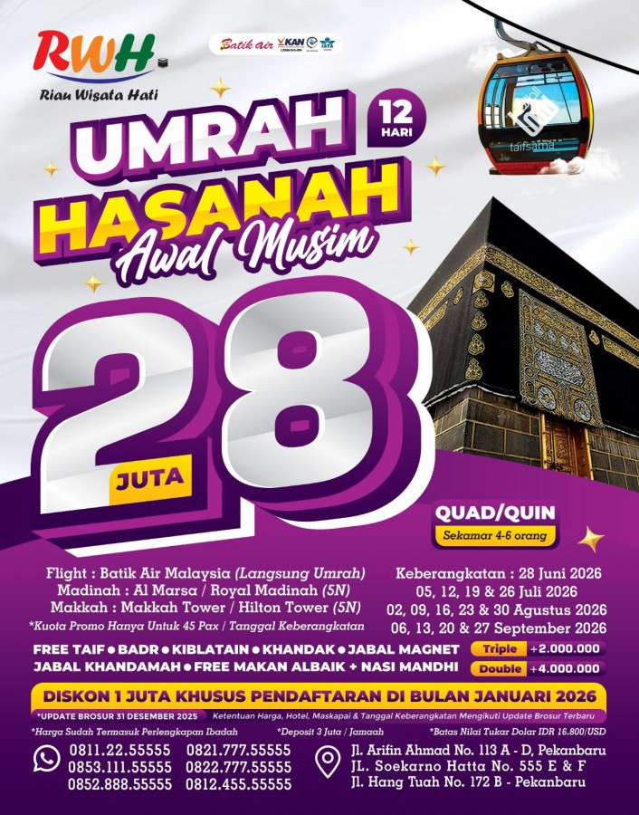 "Wujudkan impian berangkat Umroh yang Mudah, Cepat dan Aman bersama Riau Wisata Hati Service"