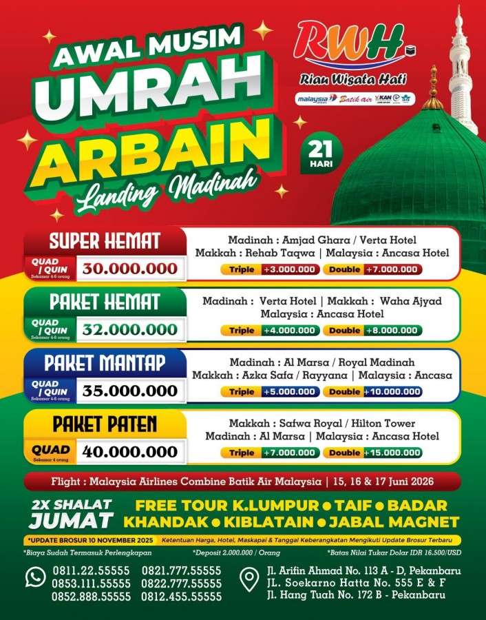 Paket NEW UMRAH ARBAIN AWAL MUSIM 21 HARI PAKET MANTAP (10 NOV 25)