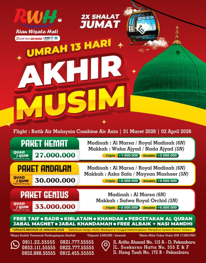 Paket UMRAH AKHIR MUSIM XTRA FLIGHT PAKET GENIUS 13 H (UPD. 23 JAN 26)
