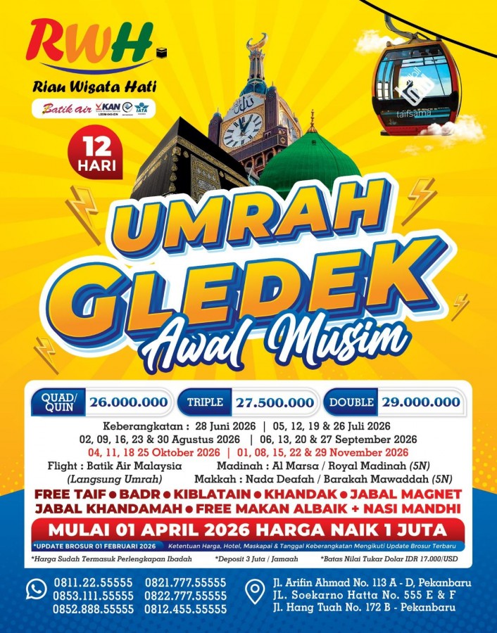 Paket UMRAH GLEDEK AWAL MUSIM 12 HARI (UPD. 01 FEB 26)