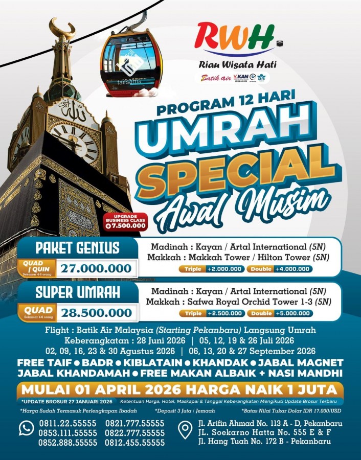 Paket UMRAH SPECIAL AWAL MUSIM SUPER UMRAH 12 HARI (UPD. 27 JAN 26)