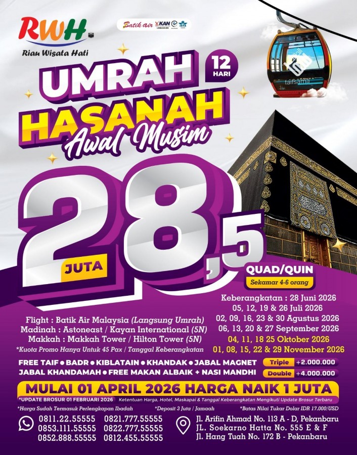 "Wujudkan impian berangkat Umroh yang Mudah, Cepat dan Aman bersama Riau Wisata Hati Service"