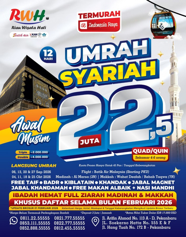 "Wujudkan impian berangkat Umroh yang Mudah, Cepat dan Aman bersama Riau Wisata Hati Service"