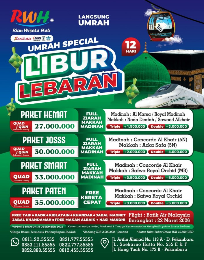 "Wujudkan impian berangkat Umroh yang Mudah, Cepat dan Aman bersama Riau Wisata Hati Service"