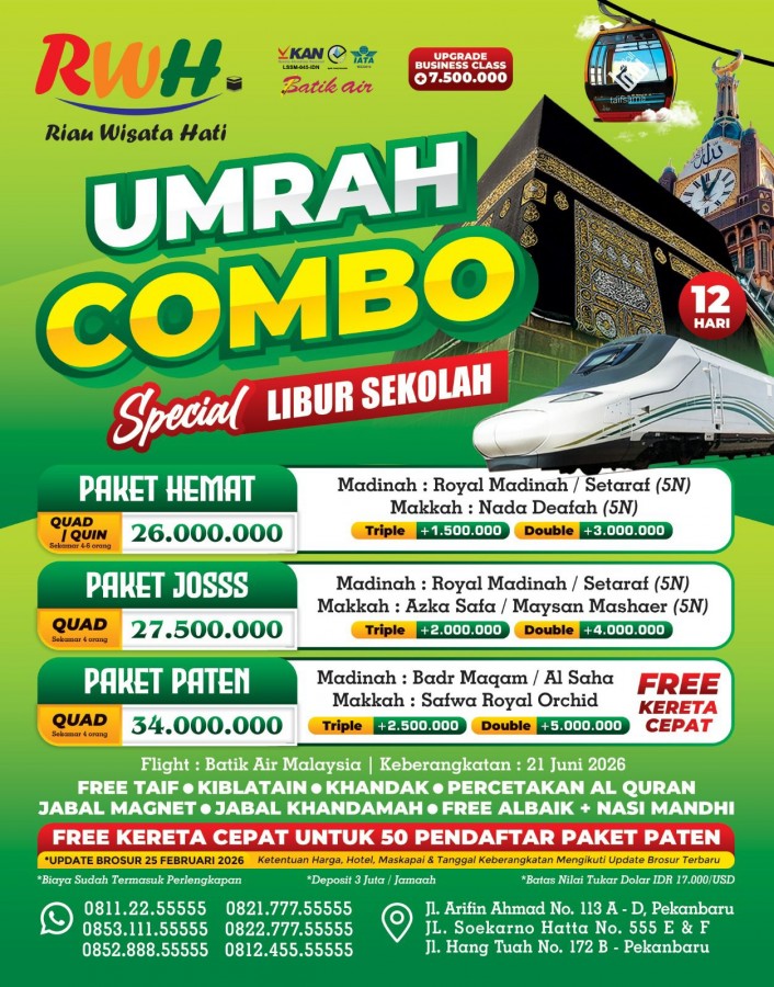 Paket UMRAH COMBO SPC LIBURAN SEKOLAH PAKET HEMAT 12 HARI (UPD. 25 FEB 26)