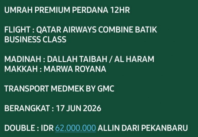 Paket UMRAH PREMIUM CUSTOM PERDANA 12 HARI BY QATAR
